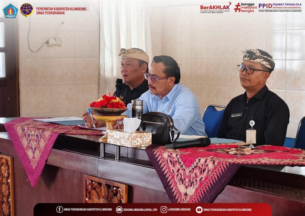 Semarapura, 8 Januari 2026 – Dinas Perhubungan Kabupaten Klungkung menerima kunjungan kerja Komisi III DPRD Kabupaten Gianyar dalam rangka studi dan diskusi terkait optimalisasi Pendapatan Daerah melalui penerapan retribusi parkir berbasis sistem online. Kegiatan tersebut dilaksanakan di Aula Dinas Perhubungan Kabupaten Klungkung dan merupakan bagian dari upaya pertukaran informasi antar pemerintah daerah.