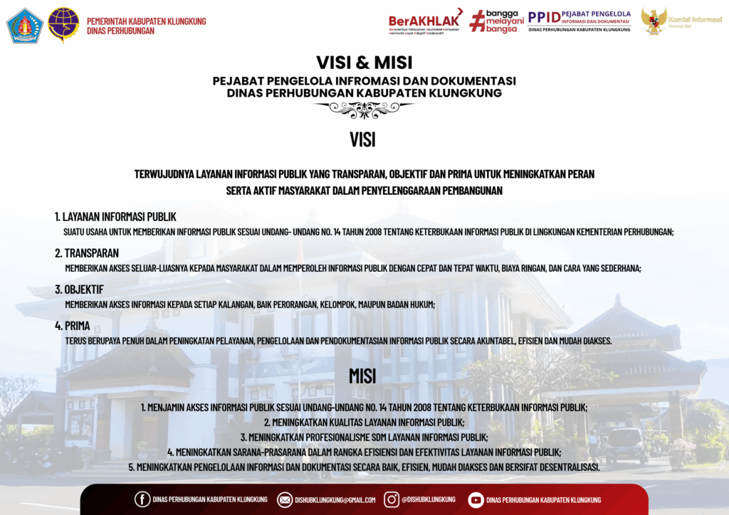 VISI & MISI PEJABAT PENGELOLA INFROMASI DAN DOKUMENTASI DINAS PERHUBUNGAN KABUPATEN KLUNGKUNG